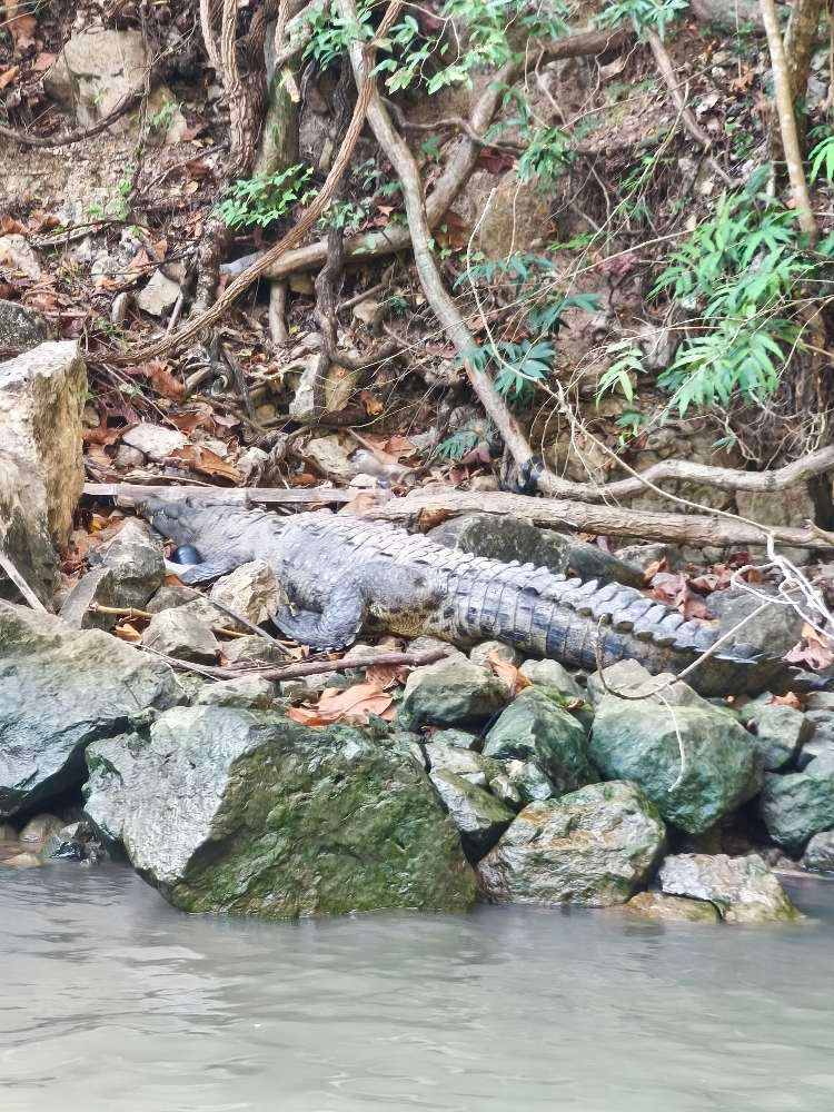 Puis le guide s'arrête à plusieurs reprises pour nous montrer des crocodiles, des oiseaux et des iguanes. Il a un oeil très affûté car il les repère de très loin !